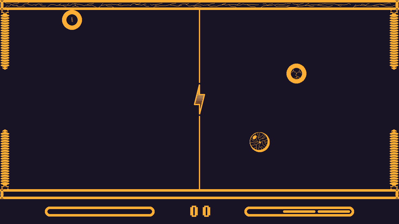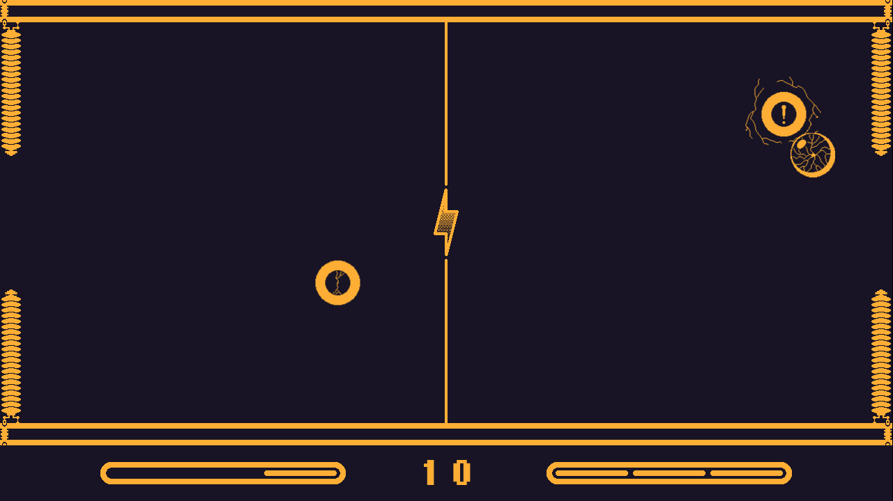 Every time you hit the puck after your opponent, it transfers a charge to your paddle. If you accumulate too much energy, your paddle will overload, stunning you for 3 seconds. To prevent an overload, touch the top or bottom rails to safely discharge. Be careful though : both overloading and discharging leaves your goal wide open for a brief moment.